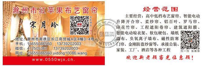 地址:滁州市长江商贸城A区4幢3-4号 电话:15655086560